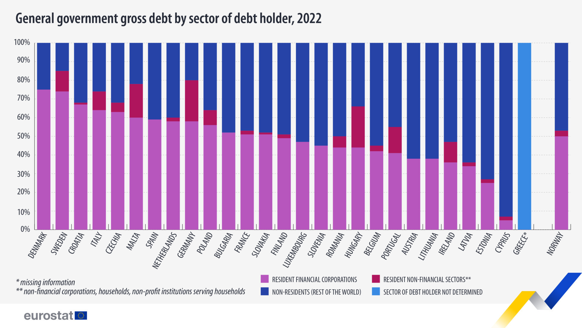 Štruktúra vlastníctva štátneho dlhu v krajinách EÚ je rôznorodá. V Dánsku vlastnia až 75 percent vládneho dlhu domáce finančné inštitúcie. Na Cypre zas 93 percent dlhu vlastnia inštitúcie alebo jednotlivci z iných krajín. V prípade slovenského vládneho dlhu vlastnia rezidenti o niečo viac ako polovicu.