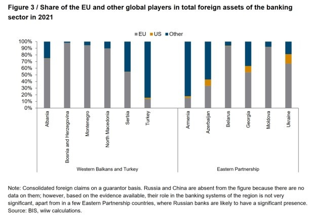 Vo väčšine krajín, s výnimkou Turecka a Arménska, hrajú dôležitú úlohu aj európske banky.