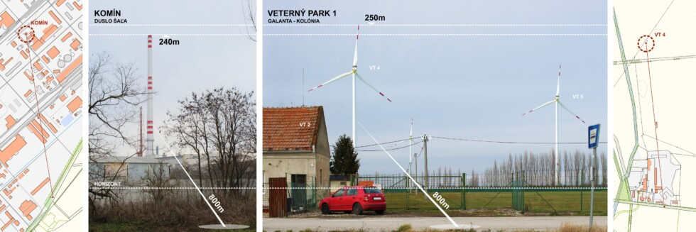 SPP v okolí Galanty plánuje postaviť turbíny s celkovou výškou od 200 do 255 metrov, pričom najmenšia vzdialenosť veternej turbíny od objektov bývania je cca 700 metrov, píše štátna firma v zámere.