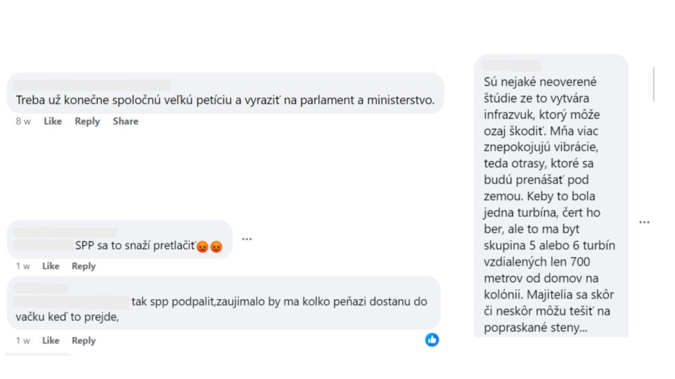„Majitelia domov sa skôr či neskôr môžu tešiť na popraskané steny,“ varuje pred veternými turbínami jeden z obyvateľov Galanty na Facebooku. O veternej energetike ľudia debatujú v susedských skupinách aj v takých, ktoré vznikli iba s cieľom zastaviť pripravované projekty za svojimi obydliami.